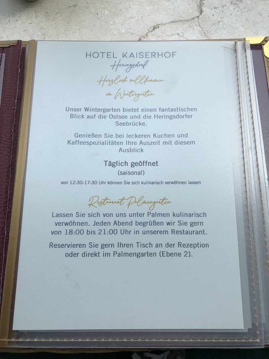 The menu at Wintergarten Café & Bar offers a variety of options suitable for different times of the day, including coffee breaks and light meals. Visitors can expect a selection of coffee drinks and teas, complemented by cakes and tortes such as Birne Helene Torte, Himbeer Käse Sahne Torte, and Kirschstreusel. Desserts also include items like Schwarzwälder Eisbecher and Affogato.